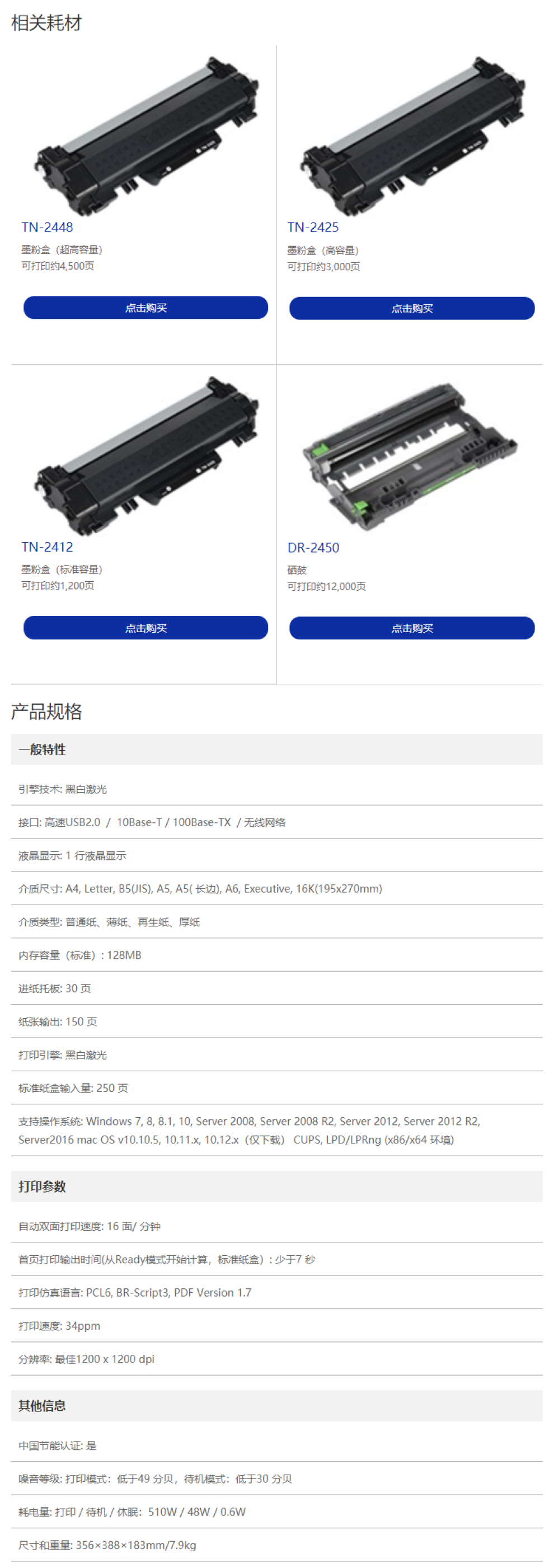 兄弟/BROTHER HL-2595DW A4 黑白打印机 黑白激光打印机 (双面打印 无线网络)
